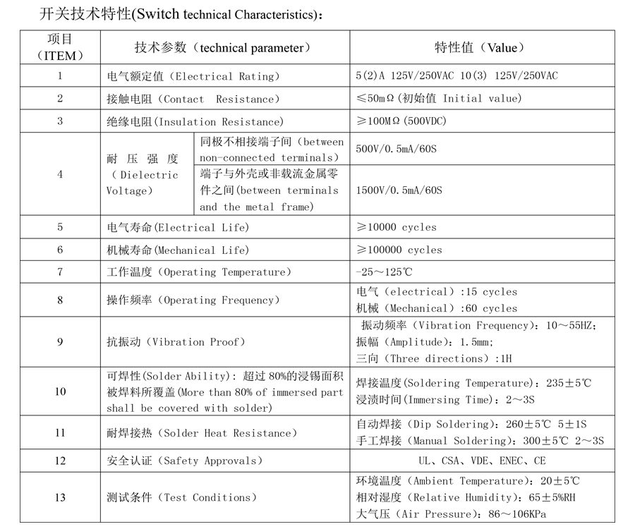 | 11 | Panghinang Heat Resistance | Dip Soldering :260±5℃ 5±1S Manu-manong Paghihinang :300±5℃ 2~3S |