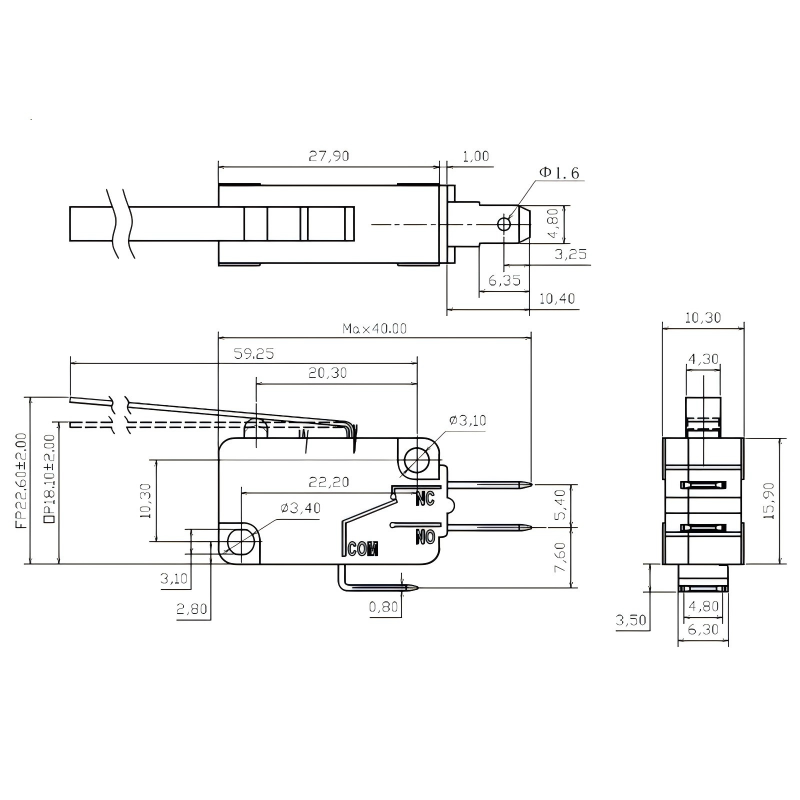 Millisecond-Precise Triggering: Gumagamit ng isang Mabilis na Mekanismo ng Snap-Action na may isang maikling paglalakbay na 0.5-1.6mm at nababagay na lakas ng operating na 0.25-4N, na nagbibigay ng mabilis at walang pagkaantala na tugon upang epektibong maiwasan ang "maling mga nag-trigger." Angkop para sa mga senaryo ng high-precision tulad ng mga kontrol sa pintuan ng microwave at mga pang-industriya na sensor.