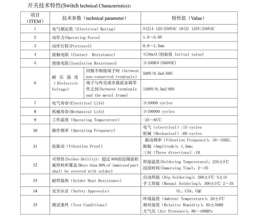 | 4 | Operating Force: 70 ± 20GF |